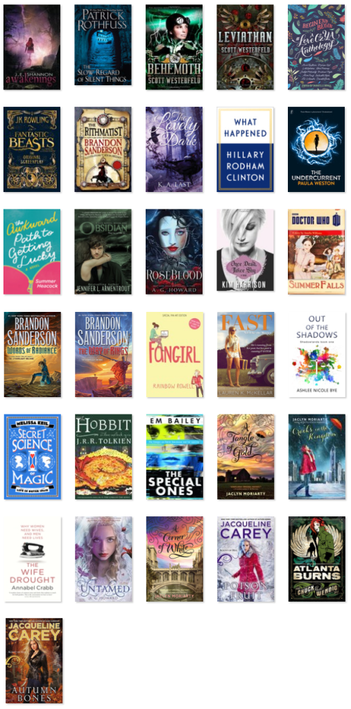 This is the first year since I started doing the Goodreads and Australian Women Writers challenges that I haven’t quite met me goals. For the Goodreads one, I set a goal of 40 and read 31. And for the Australian Women Writers challenge, I set a goal of 15 and read 11. At least I got close in both, right? (Right?)