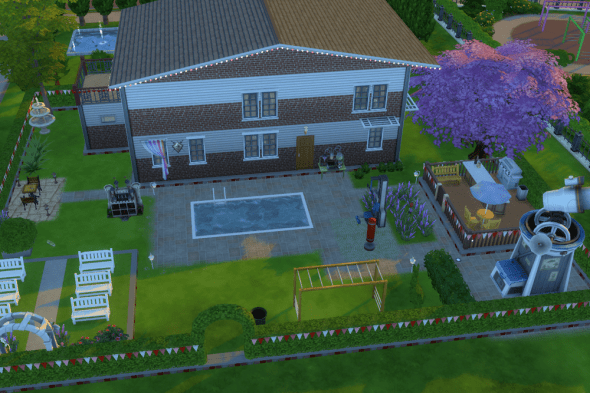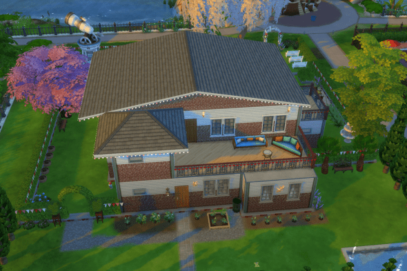 In the Sims, on the other hand, my author character (named Evelyn Martin because that was the name my character had randomly generated for her in Harry Potter: Hogwarts Mystery — did I mention I suck at naming things?) was able to almost single-handledly finance the building of a lush house for her family. I mean, look at this house. Look at it!